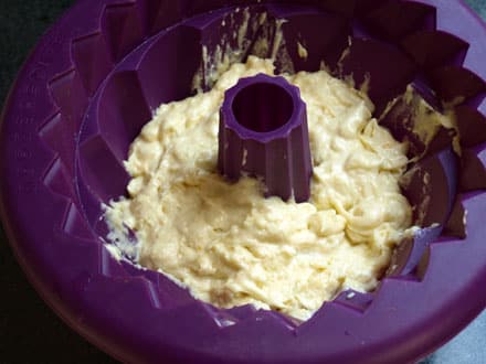 Verser la pâte dans un petit moule à kouglof ou à cake, beurré et fariné, s’il n’est pas en silicone.