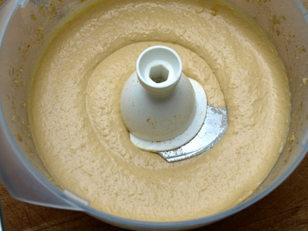 Ajouter tout ou partie du second jus de citron en fonction de la consistance souhaitée et mixer jusqu’à obtention d’une purée lisse et onctueuse.