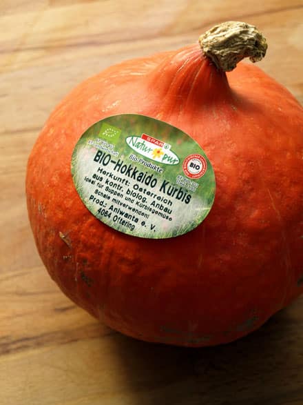 L’huile de pépins de courge, de couleur vert sombre, est populaire en Autriche. Peut-être même plus que l’huile d’olive. On la trouve facilement au supermarché tout au long de l’année, à un prix variant entre 9€ à 20-25€ le litre. Les restaurants autrichiens proposent souvent des salades assaisonnées avec cette « Kürbiskernöl » et l’automne venu, celle-ci accompagne également les soupes de courge. Je vous en propose ici une version au potimarron. J’ai opté pour le cette courge, car elle a l’avantage de pouvoir être cuite avec sa peau. Elle devient très tendre après cuisson, ce qui évite l’étape fastidieuse de l’épluchage. Pratique !